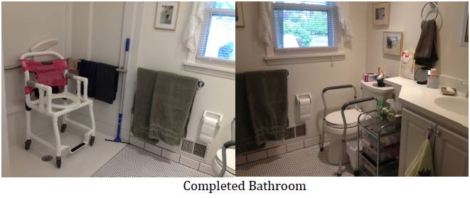 This spring we decided it’s time to get the downstairs ready for me to live in. I have ALS. It’s harder for me to sit up now without flopping over. I don’t have any use of my legs and can’t stand on my own. Although I have a stairlift, I don’t feel as safe as I once did riding it up stairs. Also, at this point my husband is the only person that can lift me. Once the bathroom downstairs is completed, with ADA compliant fixtures and a walk in shower, I still need to install a lift and create a bedroom in our family room for me to sleep. Having me on one floor and the lift, will allow others to help take care of me when my husband can not or has to work.